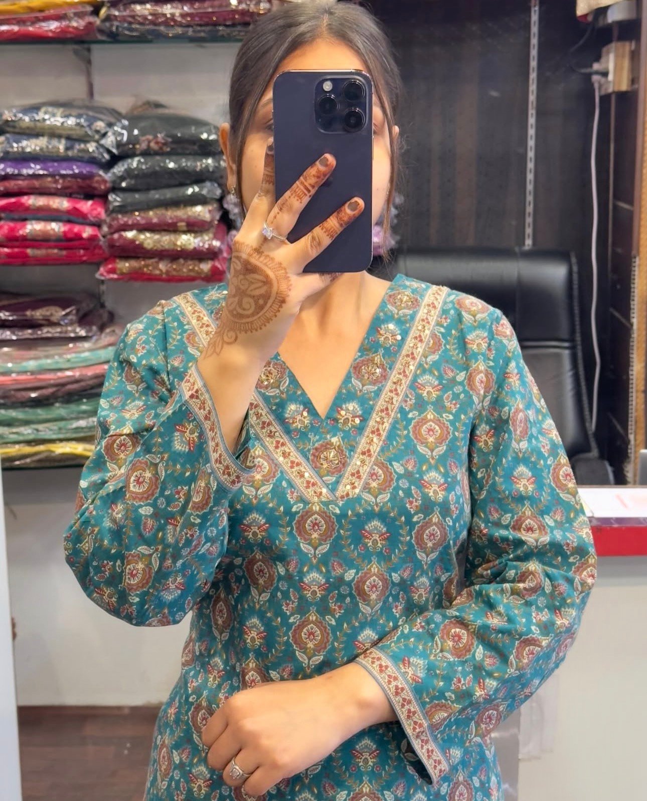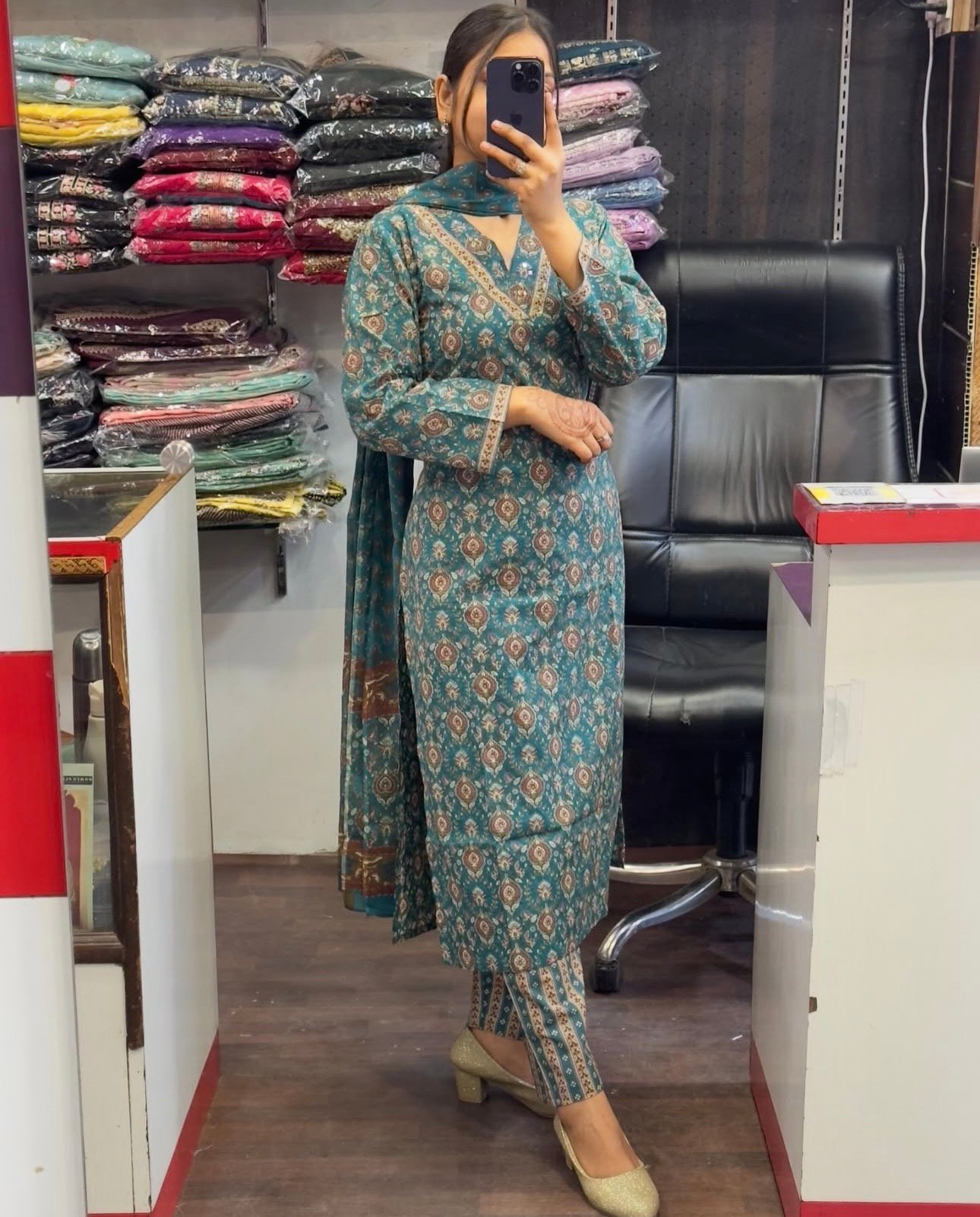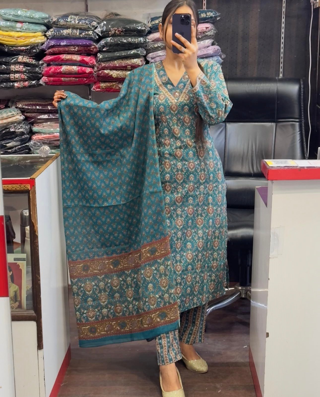 Cotton 3Pc Salwar Suit with Floral Print – Top, Bottom & Dupatta